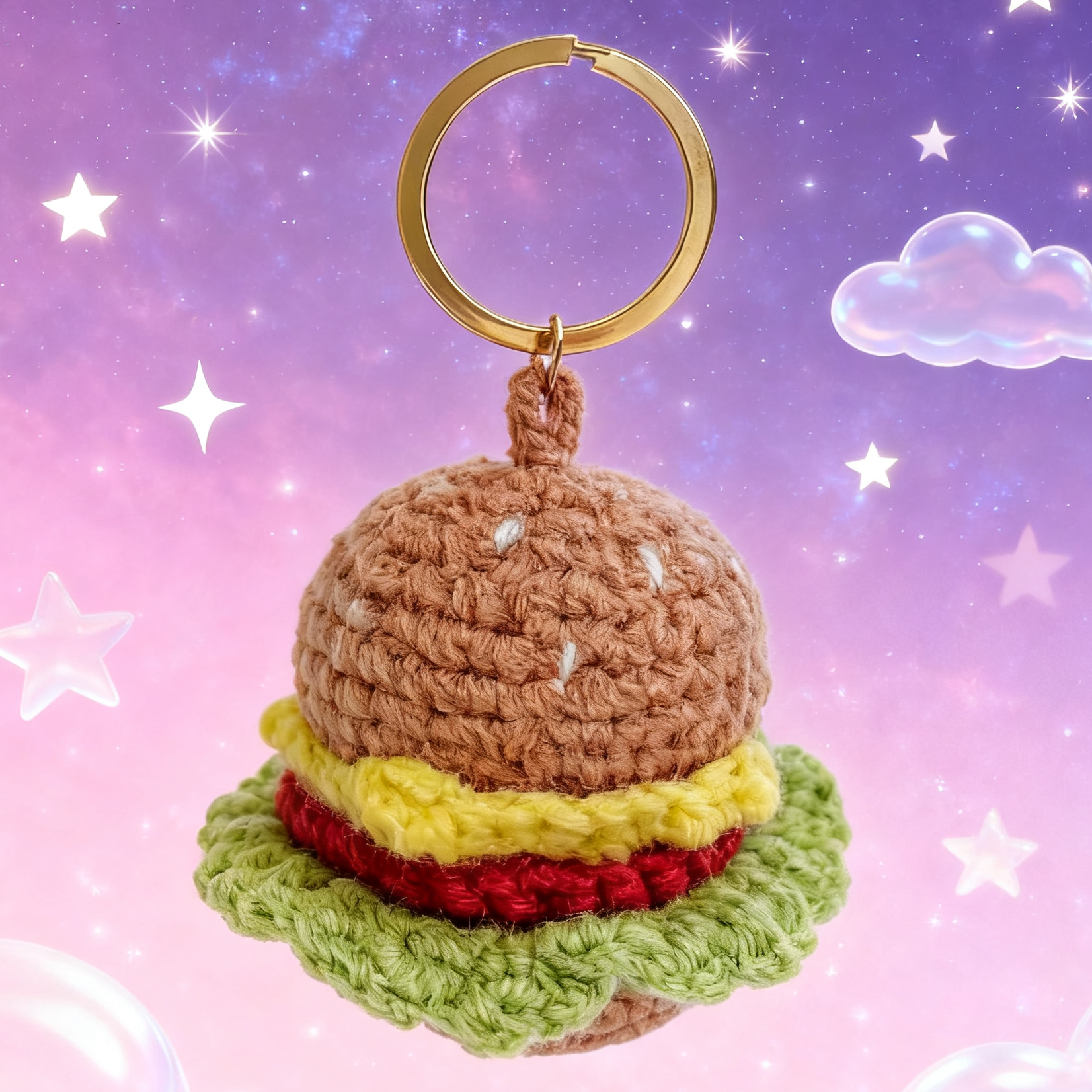 Handmade cute crochet hamburger keychain/bag pandent gift